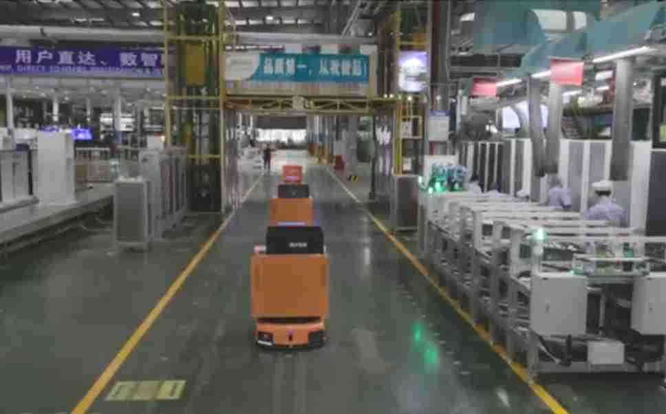 为车载冰箱物流配送打造的智能解决方案,,,,包含产中物流通过潜伏举升AMR搬运至线边,,,产后成品物流智能仓储,,流程包含产中物流智能齐套入库,,线边安灯叫料AMR智能配送至线边,,,,成品入库、、、出库,,,,通过无人堆高车机器人,,,智能仓储管理替代人工作业管理,,,实现更高存储、、、、更高效率、、、更具柔性化的解决方案。。。